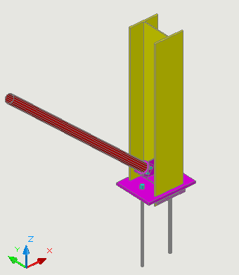 Kotvení sloupů je navrženo jako kloubové a provedeno je pomocí čelní desky a vlepovaných chemických kotev. Kotvení je doplněno o smykovou zarážku, které zajišťuje přenos vodorovných sil z ocelové konstrukce do konstrukce základu.